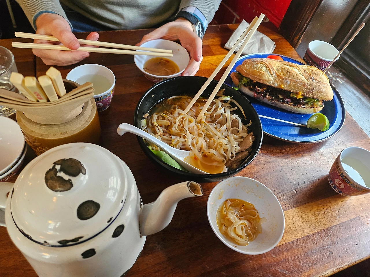 공들여서 천천히 글라스고 대성당을 구경하고 나니 슬슬 에너지가 떨어지고 있었다. 버스를 타고 이동한 이곳은 핫플인가 보다. 홍대골목처럼 맛집이 꽤 모여있었다. 골목 탐색 끝에 점심 식사는 베트남 쌀국수로 결정했다. 민트차도 한 주전자 주문하고 식당을 둘러보니 사장이 꽤나 베트남 음식에 진심인 사람 같았다. 구석구석 베트남 분위기가 장난이 아니었다.