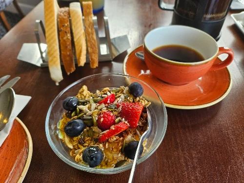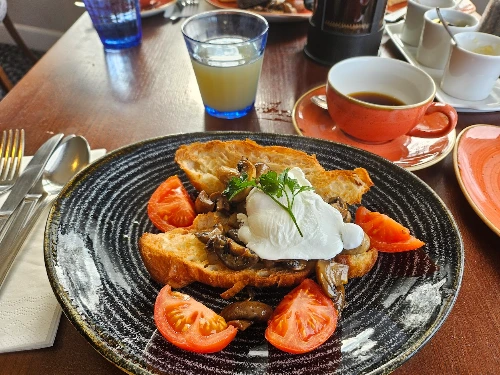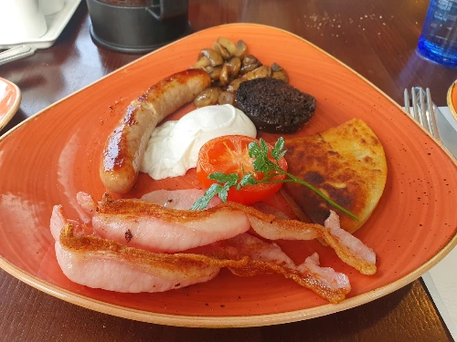 Granola Sundae and Full Scottish Breakfast 저 간단한 꿀뿌린 과일, 그레놀라 요거트가 이리도 훌륭할 일인가. 단지 포치드 에그랑 토마토, 버섯 조금과 함께 나온 토스트는 또 어떻고? Astounding black pudding! 스코티시 브렉퍼스트에는 지금까지 먹었던 블랙푸딩을 부정하게 하는 향과 풍미가 있었다. 너무 맛있다. 동네 밥집에서나 먹어봤지, 이렇게 현지 와서 먹어보는 건 처음이다. 타티 스콘도 처음 먹어본다. 감자 베이스라고 하는데 역시 맛있다. 그 두 가지가 잉글리시브렉퍼스트와 구분되는 구성인 것 같다.