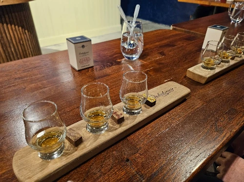 위스키 투어의 꽃 테이스팅 시간이다. 레이블이 없어 어떤 종류인지 알 수 없는 위스키 3잔과 각 위스키의 풍미를 더해줄 초콜릿이 준비되어 있었다. 나는 생강 트러플과 숙성과정이 비밀인 Winters Gold의 페어링이 제일 좋았다.