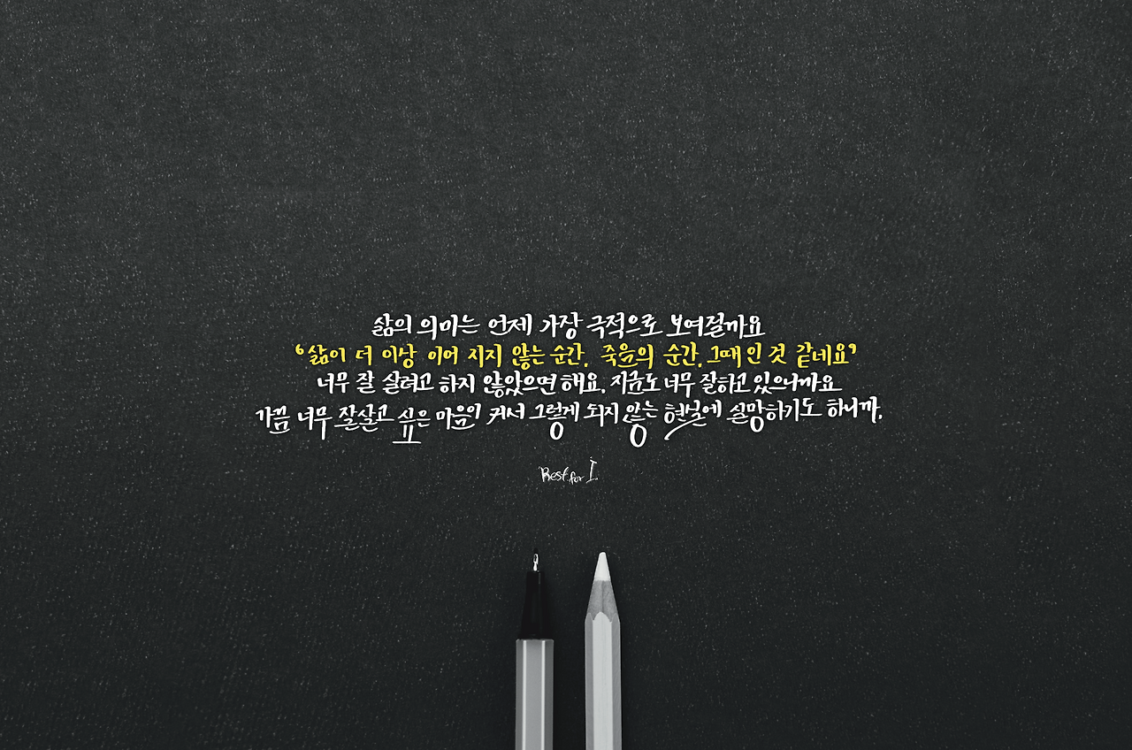삶의 의미는 언제 가장 극적으로 보일까? 아이러니하게도 더 이상 살지 않아도 될 때, 죽음의 순간 그때인 것 같다. 너무 잘 살려고 하지 않았으면 좋겠다. 지금도 너무 잘하고 있으니까 말이다. 최근 한국 사회를 들썩이게 했던 2건의 자살 사건, 보육원 퇴소 아동의 죽음이었다. 막막함, 두려움 같은 것들은 형체가 없기에 매우 크게 느껴진다. 마치 빛도 인적도 없는 곳을 혼자 걷는데 뒤에 누군가의 그림자가 비쳐오면 느끼는 두려움과 같다. 그게 고양이인지? 개인지? 사람인지? 알 수 없다. 그렇기에 머릿속에 상상 회로는 온갖 것들을 상상 회로에 집어넣어 대며 더욱더 두렵게 만든다.