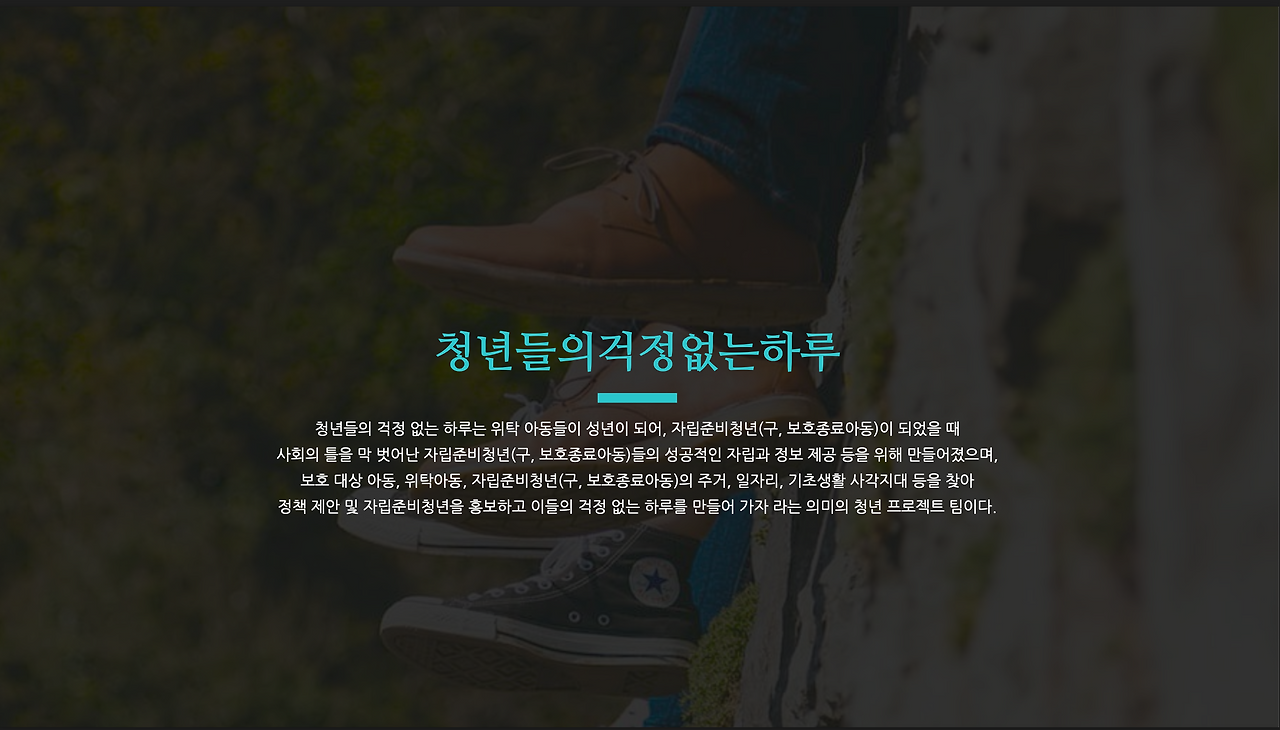 표현을 디자인하는 표현 디자이너 감성적인 프로젝트 연구소의 이마엘 입니다. 최근에 만든 프로젝트 파일은 '자립준비청년' 모임 '청년들의 걱정 없는 하루' 관련 소개서입니다. 이번 PT의 경우, Point Color로 Mint색을 정하여, 진행하였으며, 깔끔한 느낌을 주기 위해서 글은 주로 가운데 정렬과 양쪽 정렬을 사용하였습니다. 중간에 우리들의 가치를 나타낼 때는 인포그래픽의 느낌을 통해 정리된 느낌을 주었습니다.