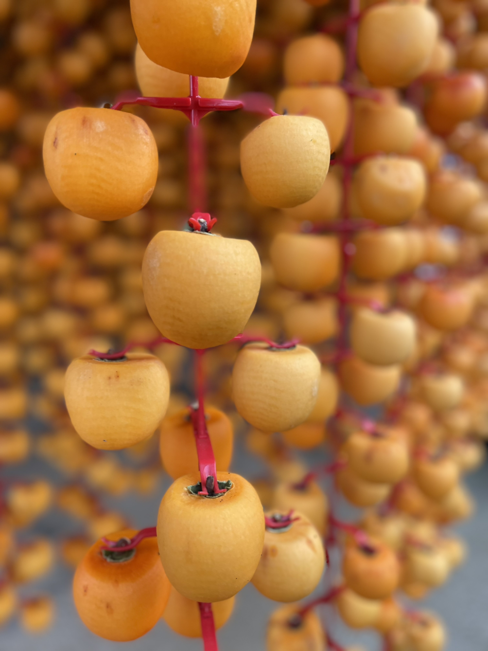둘째 날까지 곶감 작업을 마치자, 헐벗은 감들이 주차장 공간을 가득 메웠다. 촘촘하게, 하지만 서로와의 간격을 일정하게 유지한 감들이 둥둥 매달려 있는 모습이 나로서는 놀라울 따름이었다. 언제 이 많은 감들이 우리의 손을 한 번씩 거쳐 간 건지 싶었다. 개수를 세어보니 총 3,770개였다. 역시 기계의 힘은 대단했다. 감이 무게가 꽤 나가는데, 주차장 천장이 이 무게를 두 달간 헌신적으로 받쳐주기를, 걱정이 많은 나는 바랐다.