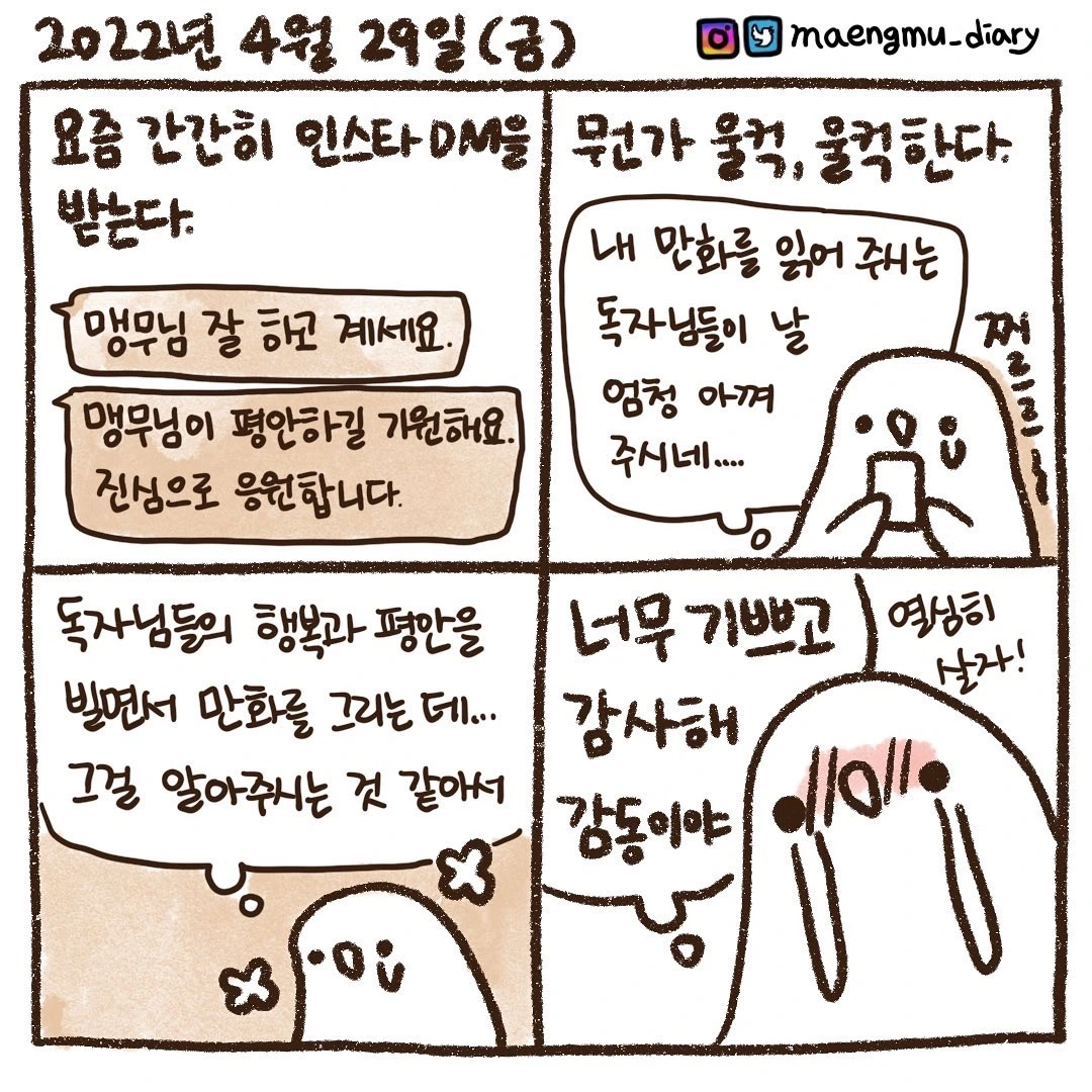 요즘 간간히 인스타 디엠을 받는데 울컥, 울컥한다.