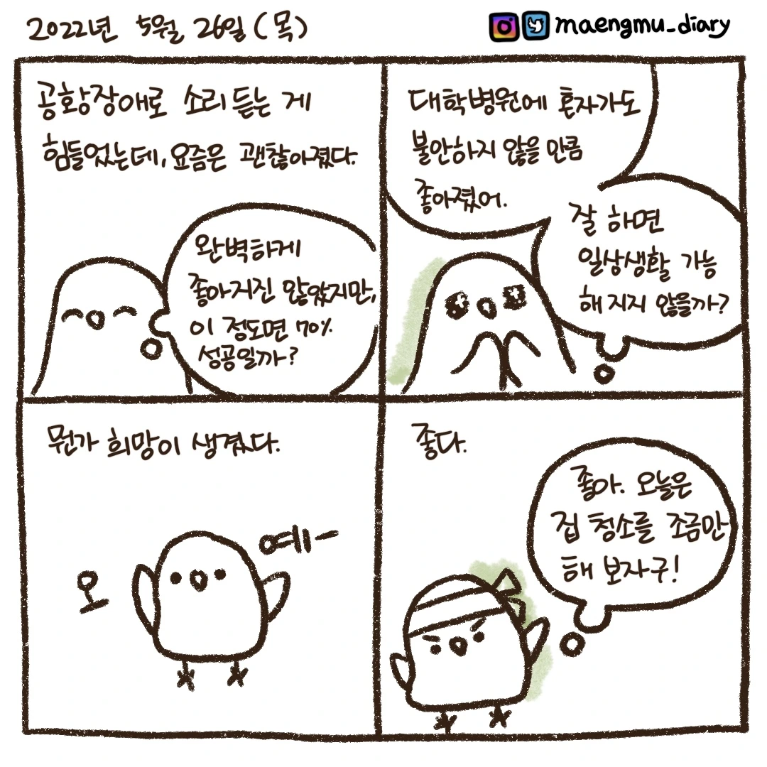 공황장애로 소리 듣는 게 힘들었는데 요즘은 괜찮아졌다.