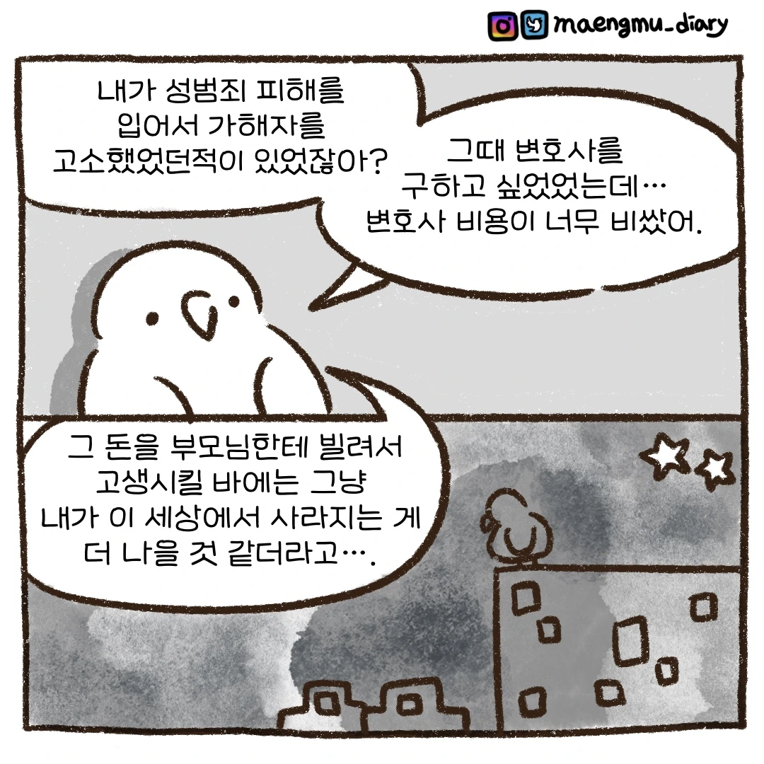 가정폭력, 성폭력 생존자 PTSD(외상후 스트레스 장애)와 우울증을 앓고 있습니다.