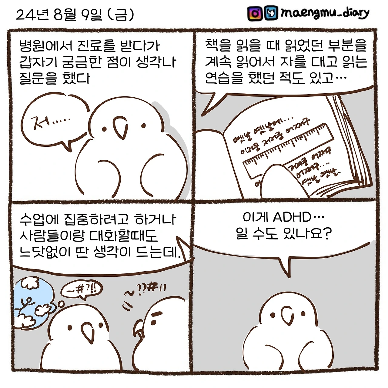 몇 년 전에 심리상담을 받을 때 얼핏 ADHD라는 이야기를 들은 적 있는데