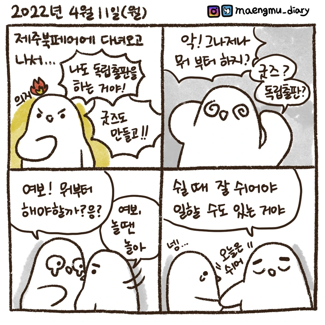 오늘 제주도에서 돌아왔습니다! 혹시라도 제 소식이 궁금하시다면 인스타에 맹무를 검색해주세요!
