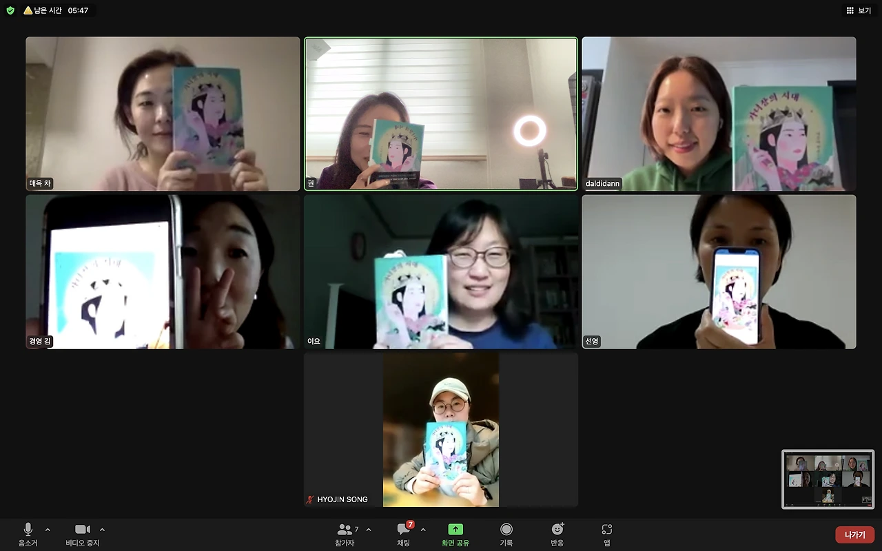 이슬아 작가가 펴낸 소설 ‘가녀장의 시대’에는 ‘슬아’라는 주인공이 등장한다. 슬아는 소설 속 인물이지만 책을 함께 읽은 멤버들은 모두 ‘슬아=이슬아’로 받아들였다. 필력을 가지고 출판사를 운영하는 가녀장 슬아와, 살림력을 인정받아 출판사 정직원으로 일하는 엄마 복희, 그리고 청소와 운전 등 다양한 일을 수행하지만 비정규직인 아빠 웅이, 모두가 이슬아의 실제 모습과 겹쳐져 보였다. 그래서일까, 이번 소설은 기존에 이슬아 작가의 글을 많이 접했던 사람보다 처음 읽는 사람들이 훨씬 재밌게 읽었다. 하지만 소설의 마지막 작가의 말처럼, 그녀가 만들어낸 ‘가녀장의 시대’는 모두에게 강렬한 인상을 남겼다.