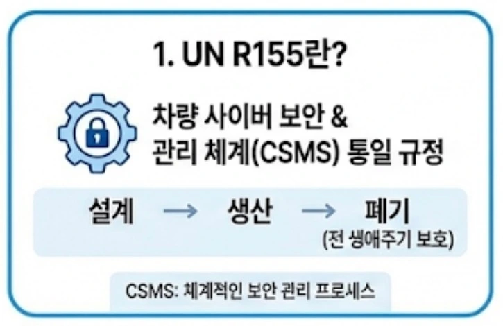오늘날의 자동차는 단순한 이동 수단을 넘어 바퀴 달린 스마트폰이라고 불릴 만큼 똑똑해졌습니다. 하지만 편리함이 커질수록 내 차가 해킹당해 갑자기 멈추거나 누군가 내 위치 정보를 훔쳐보면 어쩌지? 하는 불안감도 생기기 마련입니다. 이러한 운전자들의 깊은 고민과 불안을 해결하기 위해 국제적으로 마련된 약속이 바로 UN Regulation No. 155(UN R155)입니다.