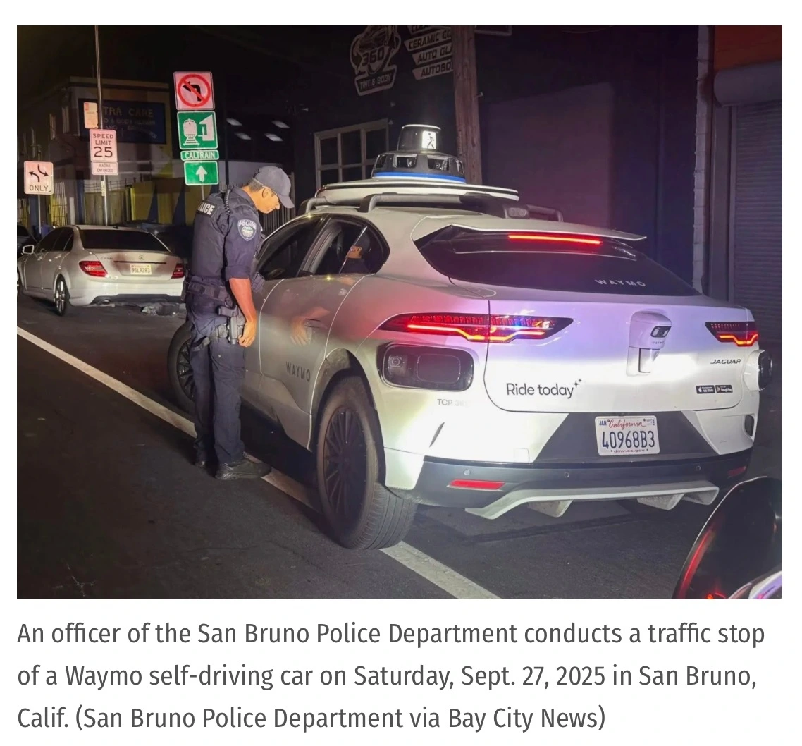 지난 9월, 샌브루노 경찰이 불법 유턴을 한 웨이모 차량을 세우고도 처벌할 법적 근거가 없어 멍하니 회사에 전화만 해야 했던 웃픈 상황, 이제는 사라지게 될 것입니다.