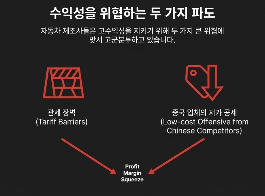 화려한 AI 기술 뒤에는 비용 절감이라는 처절한 생존 본능이 숨어 있습니다. 관세 장벽과 중국 업체들의 저가 공세 속에서, 자동차 제조사들은 수익성을 지키기 위해 고군분투 중입니다. 이번 CES의 숨은 테마는 바로 가격 경쟁력입니다.