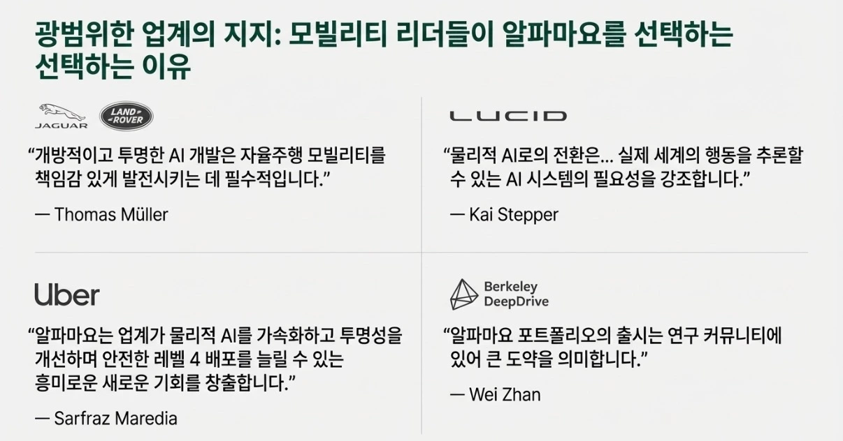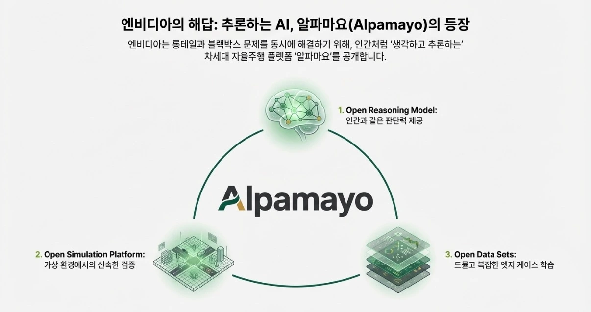 * 오픈 소스 전략: 허깅 페이스 공개 및 알파심(AlpaSim)을 통한 가상 주행 학습으로 롱테일 문제 해결.