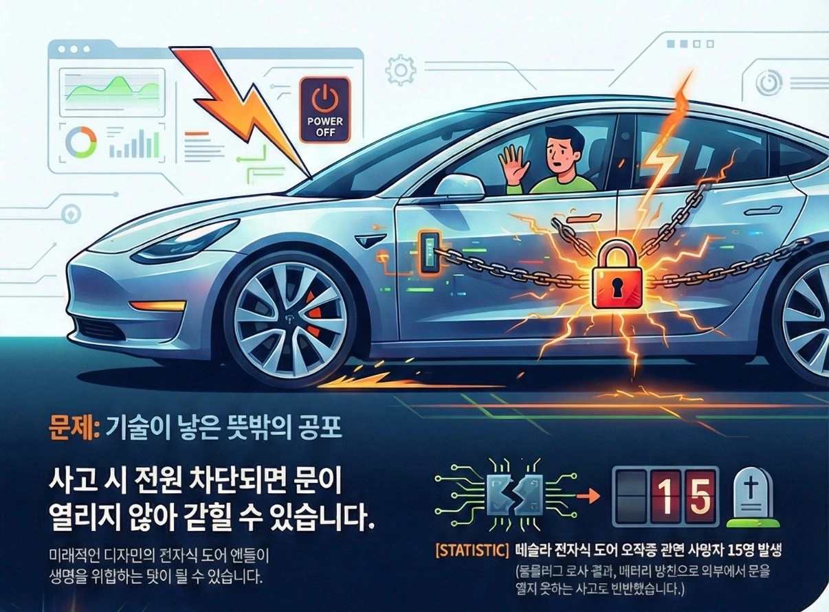 우리는 더 똑똑하고 예쁜 차를 원하지만, 그 전제 조건은 언제나 안전이어야 합니다. 전자식 도어 핸들 이슈는 우리가 편리함과 미적인 부분에 취해 가장 기본적인 물리적 안전망을 간과하고 있었던 것은 아닌지 되돌아보게 합니다.