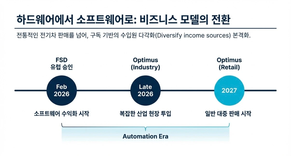 기사에 따르면, 이는 단순한 기술 과시가 아닙니다. 테슬라가 전통적인 전기차 판매 모델을 넘어, 소프트웨어 구독을 통한 수입원 다각화(Diversify income sources)를 본격화하겠다는 신호탄입니다.