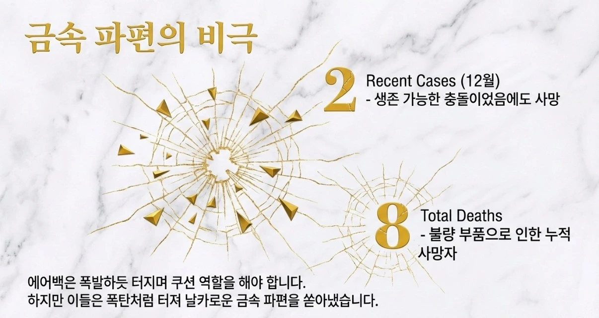 셋째, 원인입니다. 수리 과정에서 비용을 아끼기 위해 정품이 아닌, 검증되지 않은 중국산 저가 짝퉁 에어백 인플레이터(팽창 장치)를 사용한 것이 화근이었습니다.