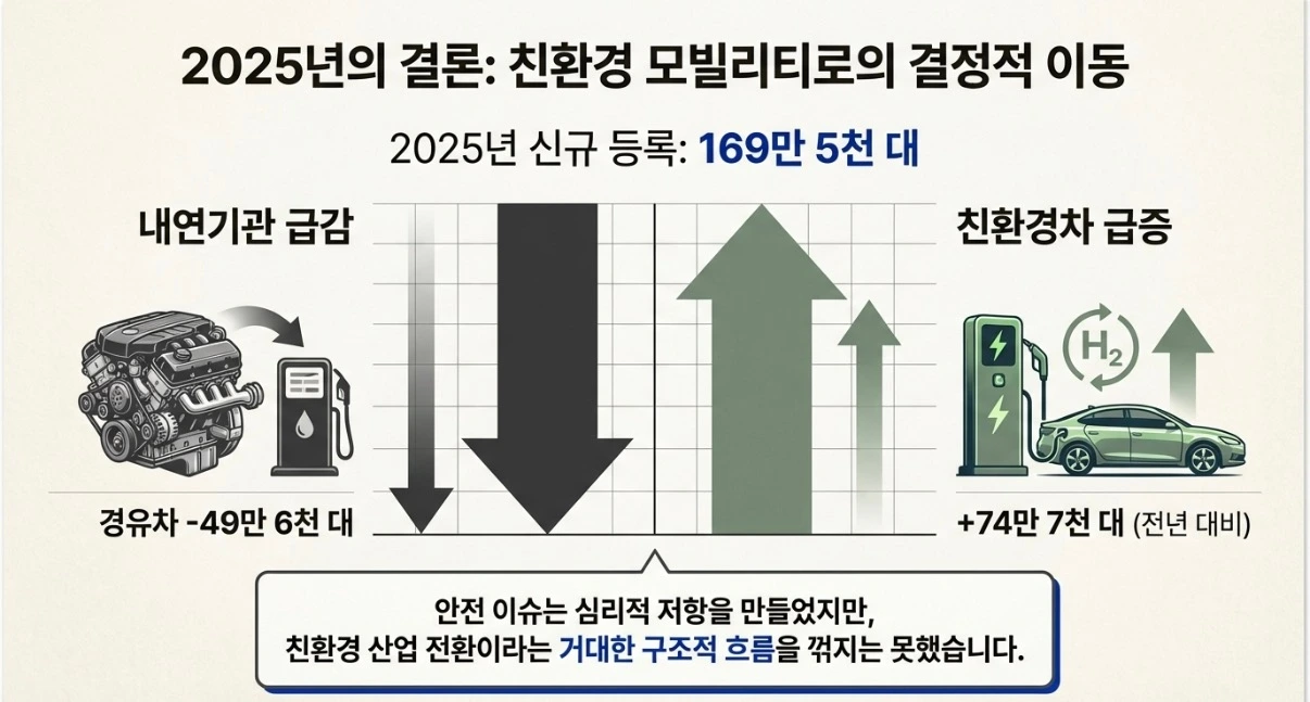 불안해서 안 산다는 말이 무색할 정도로, 통계는 시장이 오히려 더 빠르고 강력하게 친환경차로 이동하고 있음을 보여줍니다.