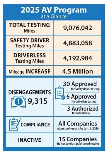 참고: California DMV Autonomous Vehicle Disengagement Report 2025, California DMV 개정안 (2025년 12월 공개)