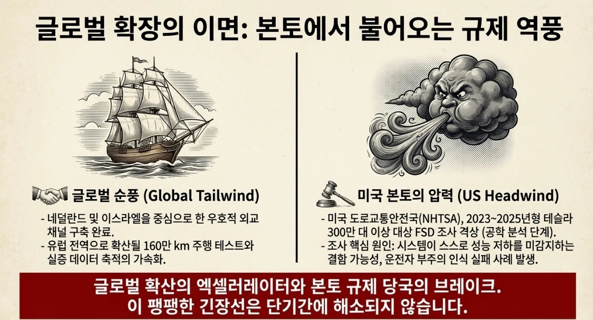 셋째, NHTSA 조사 결과. 미국 내 규제 기관의 판단이 글로벌 승인 기조에 역풍으로 작용할지, 아니면 기술 개선의 촉매가 될지를 결정합니다.