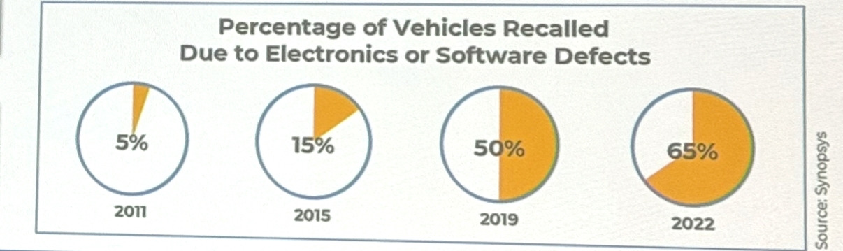 이러한 변화는 리콜의 성격 또한 바꾸었습니다. 2011년 전체 리콜의 5%에 불과했던 소프트웨어 결함 비중이 2022년에는 65%로 급증한 자료는 이를 명확히 보여줍니다. SDV 시대에는 소프트웨어 결함이 곧 대규모 리콜로 이어질 수 있습니다.
