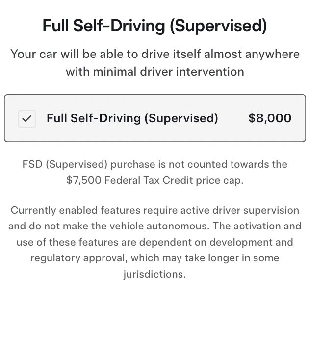 가장 큰 변화는 FSD의 정의 자체에 있습니다. 이제 테슬라는 고객에게 "Full Self-Driving (Supervised)", 즉 '완전 자율주행(감독 필수)'만을 판매하며, 세부사항에는 차량이 "자율주행(autonomous)"이 아니며 해당 기능을 약속하지 않는다는 내용이 명시되어 있습니다. 즉, 현재 FSD를 구입하는 사람들은 이전 구매자들과 달리 운전자 감독이 불필요한 자율주행이 가능한 기능을 사는 것이 아닙니다. 테슬라는 FSD를 이제 "운송 작업을 자율적이거나 유사한 방식으로 수행할 수 있는 첨단운전 시스템(advanced driving system)"으로만 간주합니다. 운전자의 지속적인 감시가 필요한 현행 FSD 버전도 이 정의에 충분히 부합하게 된 것이죠.