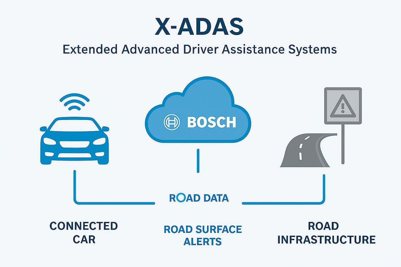X-ADAS의 가장 구체적인 실현 사례는 Bosch와 NIRA Dynamics의 협업을 통해 구현된 '실시간 노면 예측 경고(Road Surface Alerts)' 기능입니다. 이는 ADAS의 진화가 예측형으로 넘어가는 분기점을 보여줍니다.