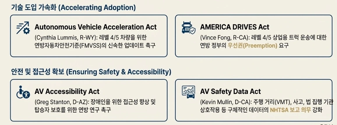 트레일 러닝을 할 때 코스가 제각각이면 부상 위험이 큽니다. 현재 미국의 자율주행 규제가 딱 그렇습니다. 주(State)마다 허가 조건과 경찰 대응 매뉴얼이 제각각인 '패치워크(Patchwork)' 상태죠. 이를 해결하기 위해 미 의회는 '아메리카 드라이브 법' 등을 통해 연방 차원의 통일된 기준을 마련하려 노력했습니다.