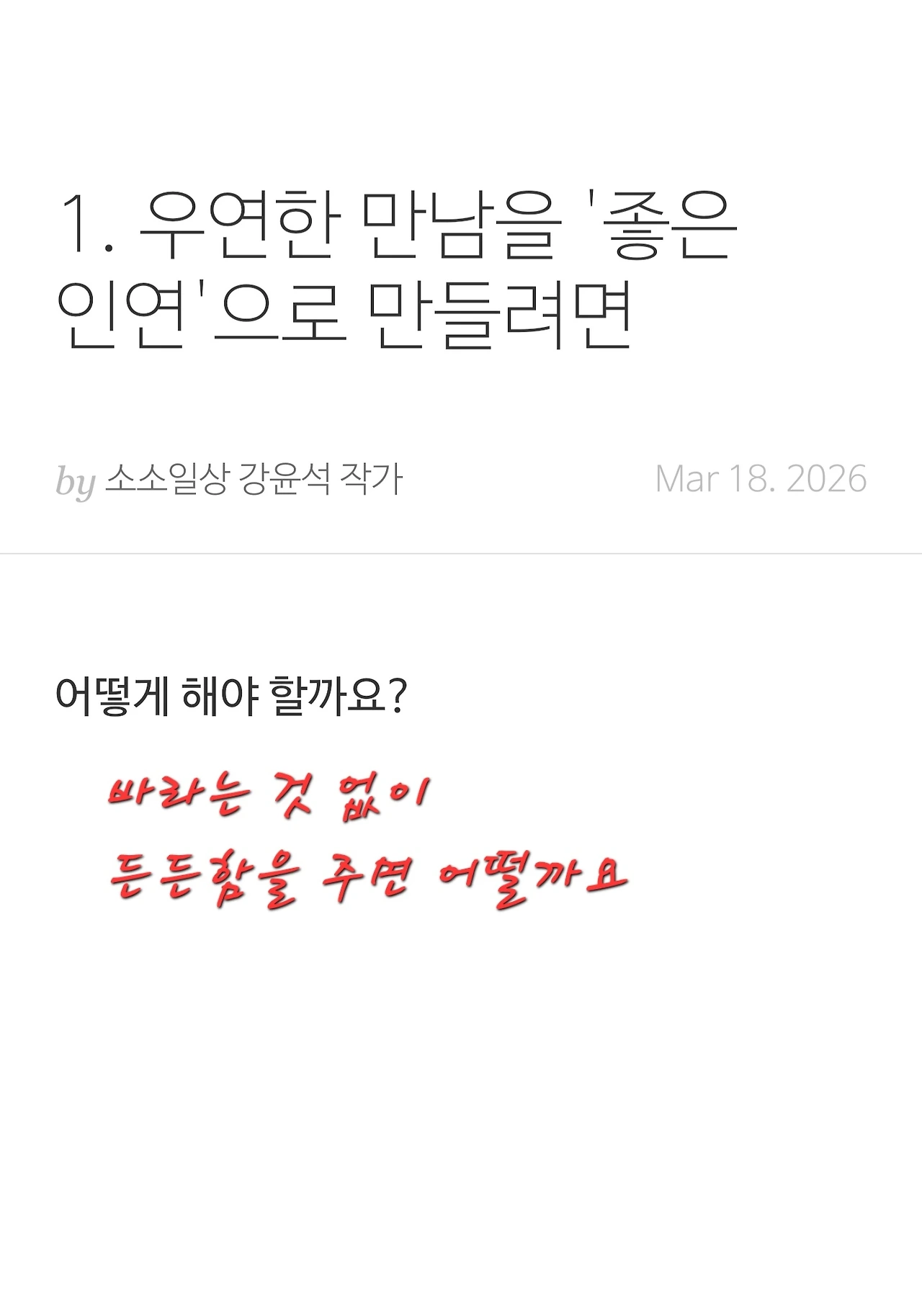 1. 우연한 만남을 '좋은 인연'으로 만들려면