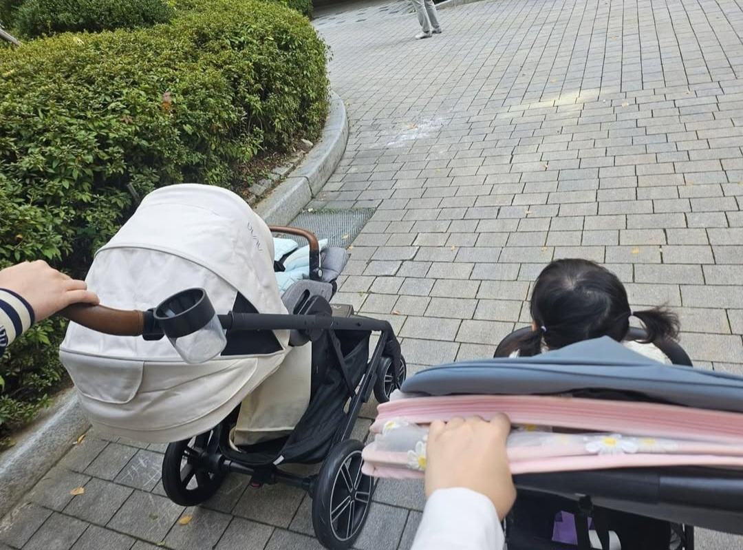 첫째랑 태어난 지 53일 된 둘째를 데리고, 우리는 처음으로 함께 산책을 나섰다.
