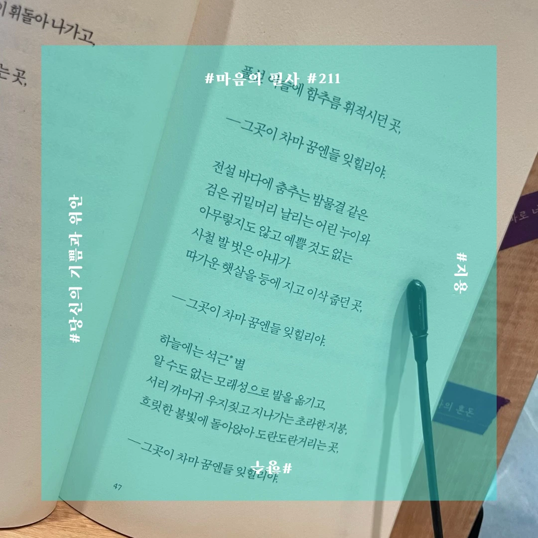 꿈에서 이제 막 새싹의 푸름 당신 눈빛으로 인다