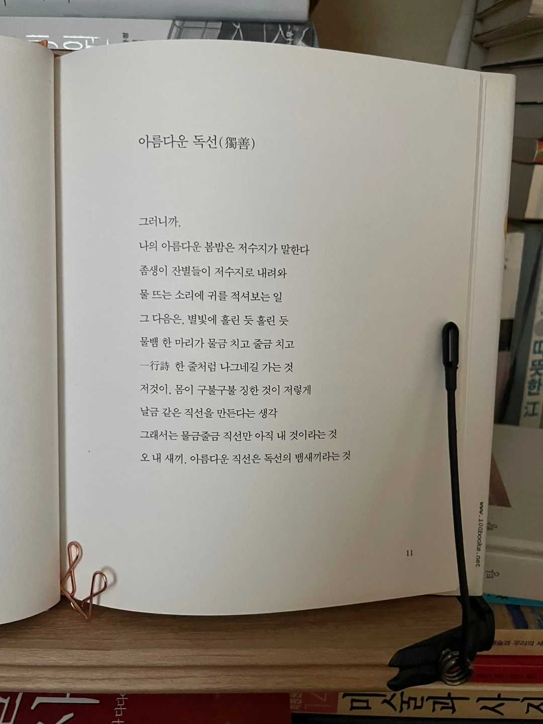 내 겨울밤은 겨우해서 '구불'이라도 '긋'는가 '직선'은 입에 올릴기도 화끈거리는데 흠모하는 스님의 '말빚'이란 단어만 차곡차곡하는데 아서라 두어라 하시는데 그래도 나의 것도 어여쁘다 하는 것 선의 출발점은 있어야 하는 것