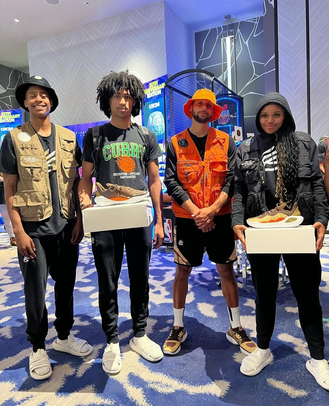 커리 브랜드는 2025년까지 청소년 100,000명 이상에게 스포츠 기회 제공을 목표로 하고 있다. 미국 내 소외 지역 30곳 이상에 농구 코트를 건설하거나 보수 중이며 커리 본인이 직접 코트 오픈 행사에 참석하기도 한다. 즉 브랜드의 존재 자체가 사회공헌 활동과 직결되어 있다.