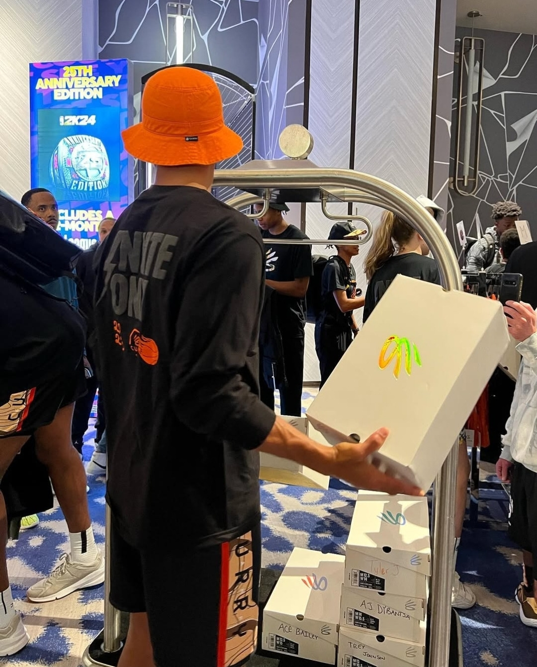 고객님: (매장 문을 열고 들어오며) "안녕하세요! 혹시 커리 농구화 있나요? 요즘 신형 Curry 12 완전 예쁘던데요!"