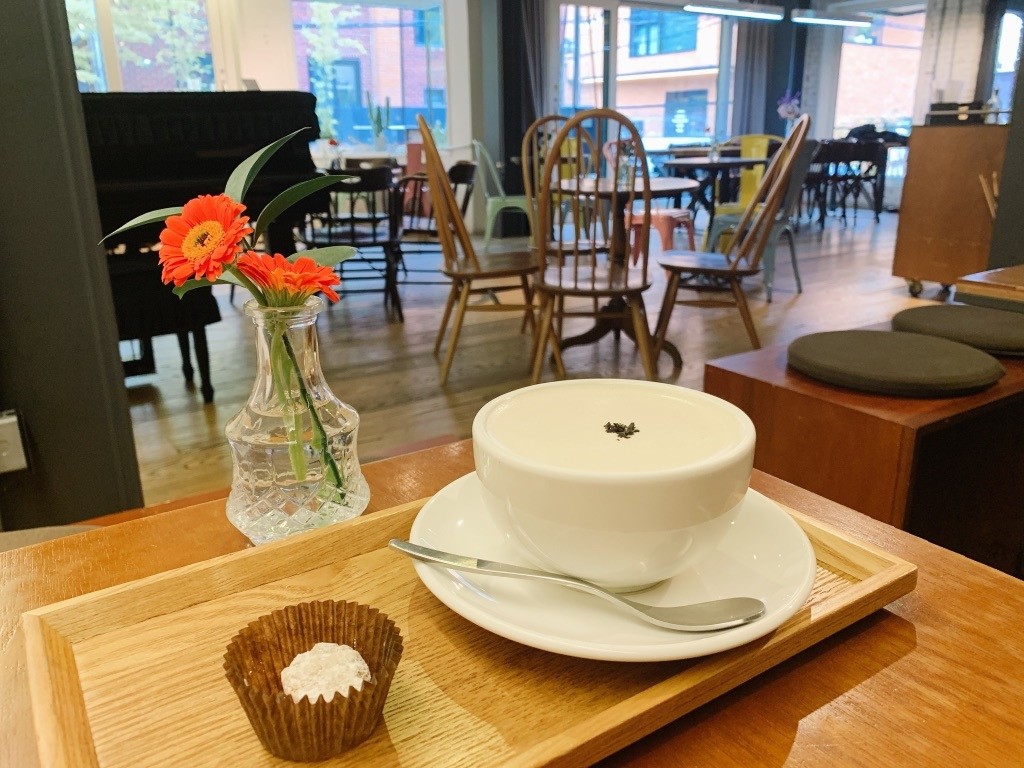 열시 사십분쯤 도착했다. 첫 손님이었다. 직원은 이른 시간에 방문한 손님이 달갑지 않은 모양이었다. 이 곳이 일상을 소비하는 일터이고 점심 시간을 전후로 매일 몰려드는 손님들을 생각한다면 이해할 만도 했다. 가장 인기있다는 밀크티를 주문했다. 볼이 넓은 잔에 가득 담긴 밀크티 위에는 촘촘히 묶어낸 우유거품이 가득했다. 하얀 거품 가운데에는 백원짜리 동전만한 크기로 잘게 부순 찻잎을 뿌려 올렸다. 거품이 표면을 덮고 있지만 차를 마실 땐 거품과 차가 적당히 섞여 들어온다. 볼이 넓기 때문이다. 마시다보면 표면의 찻잎이 한걸음씩 내 쪽으로 움직인다. 약간 어긋난 균형이 왠지 더 예뻐보인다. 차 향이 강하진 않다. 대신 온도와 당도가 알맞고 따뜻함이 오래 유지되어서 시간을 두고 조금씩 마시기에 좋다. 함께 나온 쿠키도 두 세번 나누어 곁들이기에 나쁘지 않다.