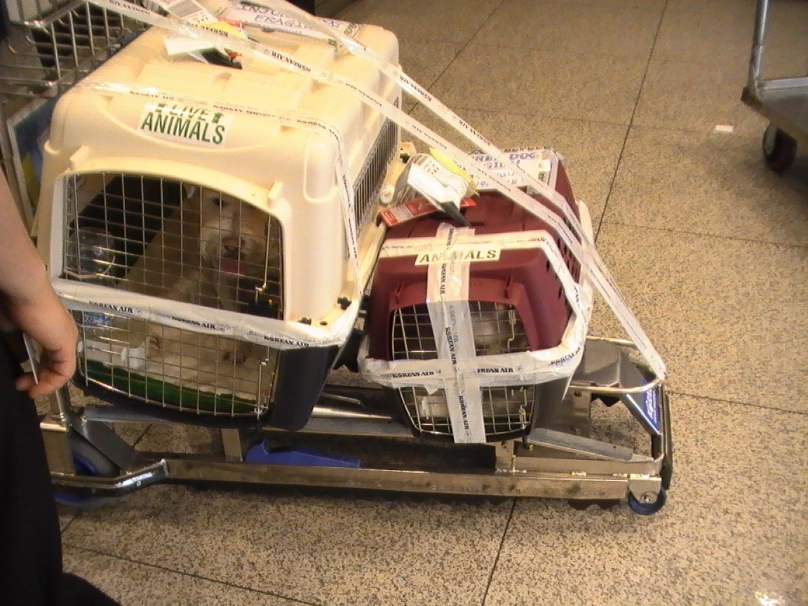 참, 튼튼한 가위를 가져가세요. 공항에서 동물을 수하물로 들여 보낼 때 캔넬의 문이 안 열리게 케이블타이로 꽝꽝 묶습니다. 장시간 비행 후 화장실을 가야 하는 아이들을 빠르게 꺼내려면 가위가 있으면 좋아요.