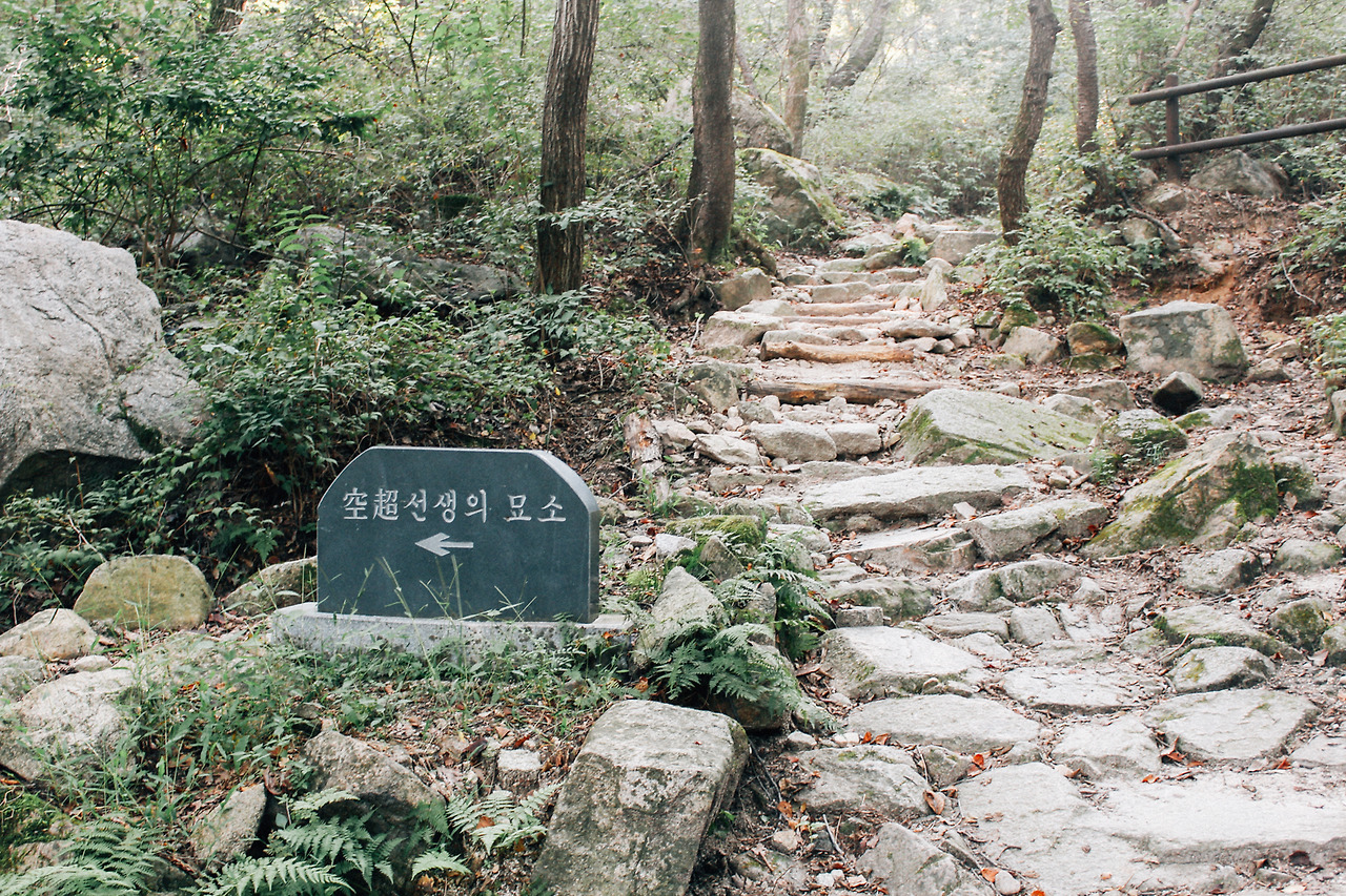 수유문화정보도서관 맞은편에 파출소가 있고, 그 앞 횡단보도 옆에 허름하고 초라한 비석이 비쭉 고개를 내밀고 있다. 가드펜스에 바싹 붙어 있는 그것의 존재는 눈 밝은 행인이 아니면 쉽게 발견할 수 없다. 비석인 듯, 이정표인 듯 서운할 정도로 홀대받는 애매한 구조물에는 ‘공초오상순선생묘소입구’라 적혀 있다. 골목 여정은 이정표 앞에서 끝나도 괜찮을 듯싶다.