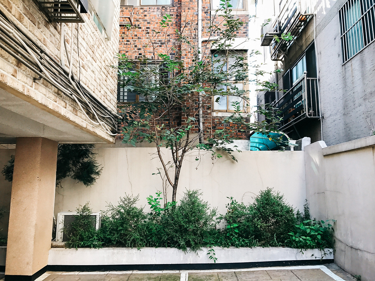 간단히 말해 모두 '화단'이라 표현하지만 사실 모양도 크기도 다 달랐다. 여유 있게 나무가 심겨져 있는 곳도 있고, 빠듯하게 겨우 나무 한 그루 들어서 있는 곳도 있었다. 어떤 곳은 큰 나무가 살기엔 비좁아 키 작은 나무만 총총총 서 있기도 했다. 화단이 들어갈 자리가 없는 빌라 앞에는 하다못해 큰 화분 몇 개라도 놓여 있었다. 화단은 건물의 어느 부분에 위치하고 있느냐도 달랐다. 지어진 지 얼마 안 된 빌라 건물에는 1층 주차장 안쪽에 깨끗하고 새침하게 화단이 마련돼 있었다. 어떤 옛날 건물에는 뒤편 건물과 담 사이 빡빡한 공간에서 나무들이 억세게 자라나 있었다.