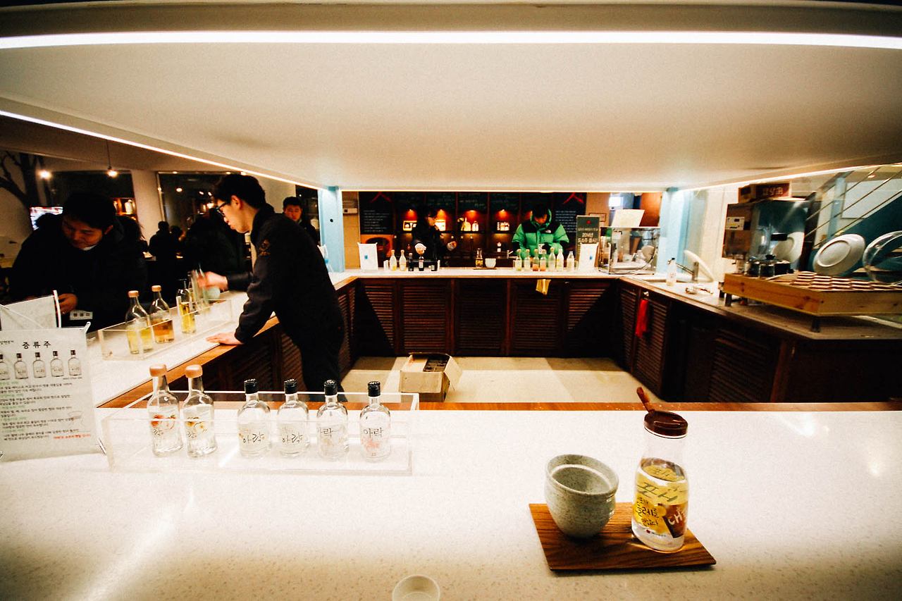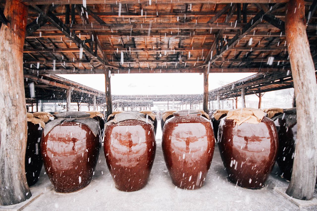 정원에는 곳곳에 앉아서 쉴 수 있는 정자와 다양한 한옥 건물이 있다. 과하지 않다면 마루에 걸터앉아 한 잔 술 기울이는 것도 좋을 것이다. 정원의 끝에 우곡루가 있는데, 2층 누각에 오르면 세월랑을 포함한 산사원 전경과 그 뒤로 펼쳐진 운악산의 풍경을 감상할 수 있다. 단풍 좋기로 유명한 운악산이라 가을도 좋지만, 눈 쌓인 정원과 산을 볼 수 있는 지금이 더 좋다. 추우면 술 한 잔 마시면 되고, 그래도 추우면 한 잔 더 먹으면 되지 않겠는가. 눈과 비, 찬바람 다 맞고 오랜 시간을 견뎌 내 앞에 온 술은 이리저리 치여 얼어붙은 내 심장도 녹게 만든다.