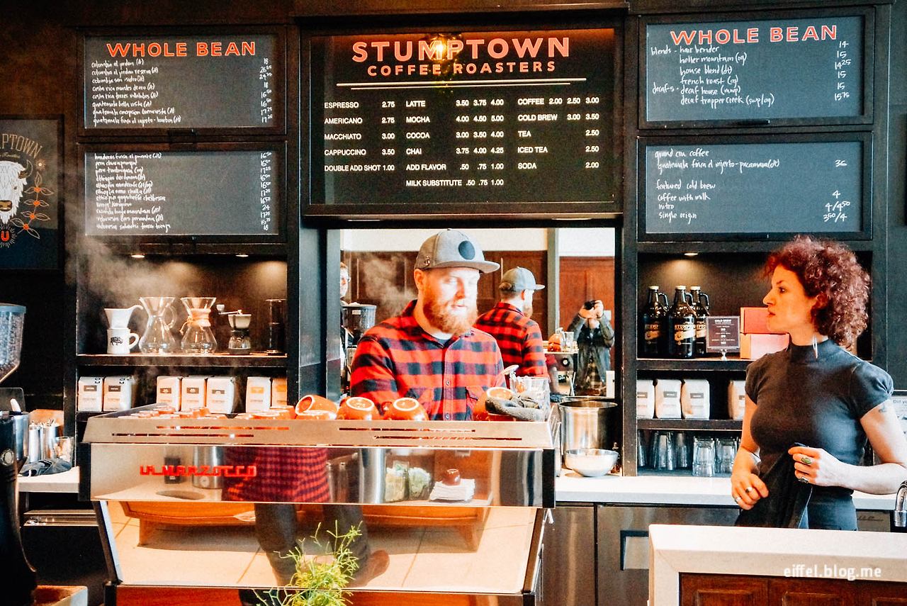 내 인생 베스트 아이스 라떼를 맛보게 해준 ‘스텀프타운Stumptown Coffee Roasters’ 커피가 포틀랜드 출신이란 걸 알게 된 후 이 도시의 신뢰도는 급격히 상승했다. 1999년 문을 열었으며 공정무역을 통해 유기농 원두만을 취급한다는 콘셉트 또한 마음에 들었다. 커피를 만들어주는 스텝들의 빈티지한 복장 또한, 내 기억이 맞다면, 스텀프타운이 가장 먼저 시작했다. 지금이야 웬만한 카페에서 흔히 볼 수 있는 풍경이지만.
