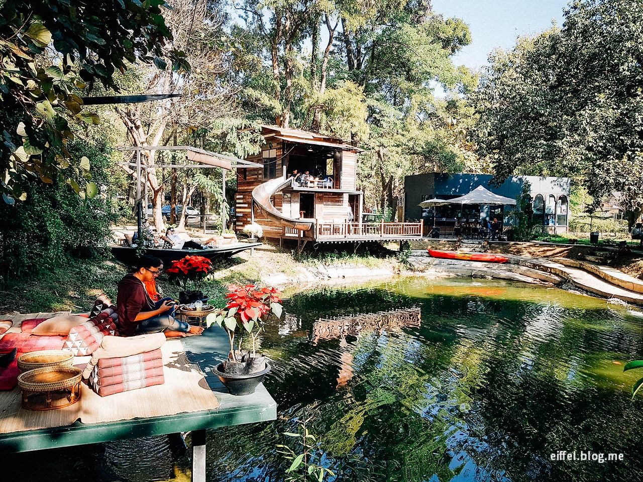 치앙마이 근교, 반캉왓 근처에 있는 ‘넘버 39 카페No.39 Cafe’ 는 내 인생 카페라고 부를 만큼 최고의 카페였다. 미끄럼틀과 카누, 작은 연못, 공중에서 뿌려지는 생수 미스트, 드러누워 쉴 수 있는 야외 테이블과 쿠션이 어우러져 진정한 쉼터가 되어주는 곳이다. 종종 라이브 공연이 펼쳐지기도 하니 이보다 더 좋은 천국은 없으리라. 초콜릿 향이 살짝 나는 커피 또한 잊을 수 없는 맛.