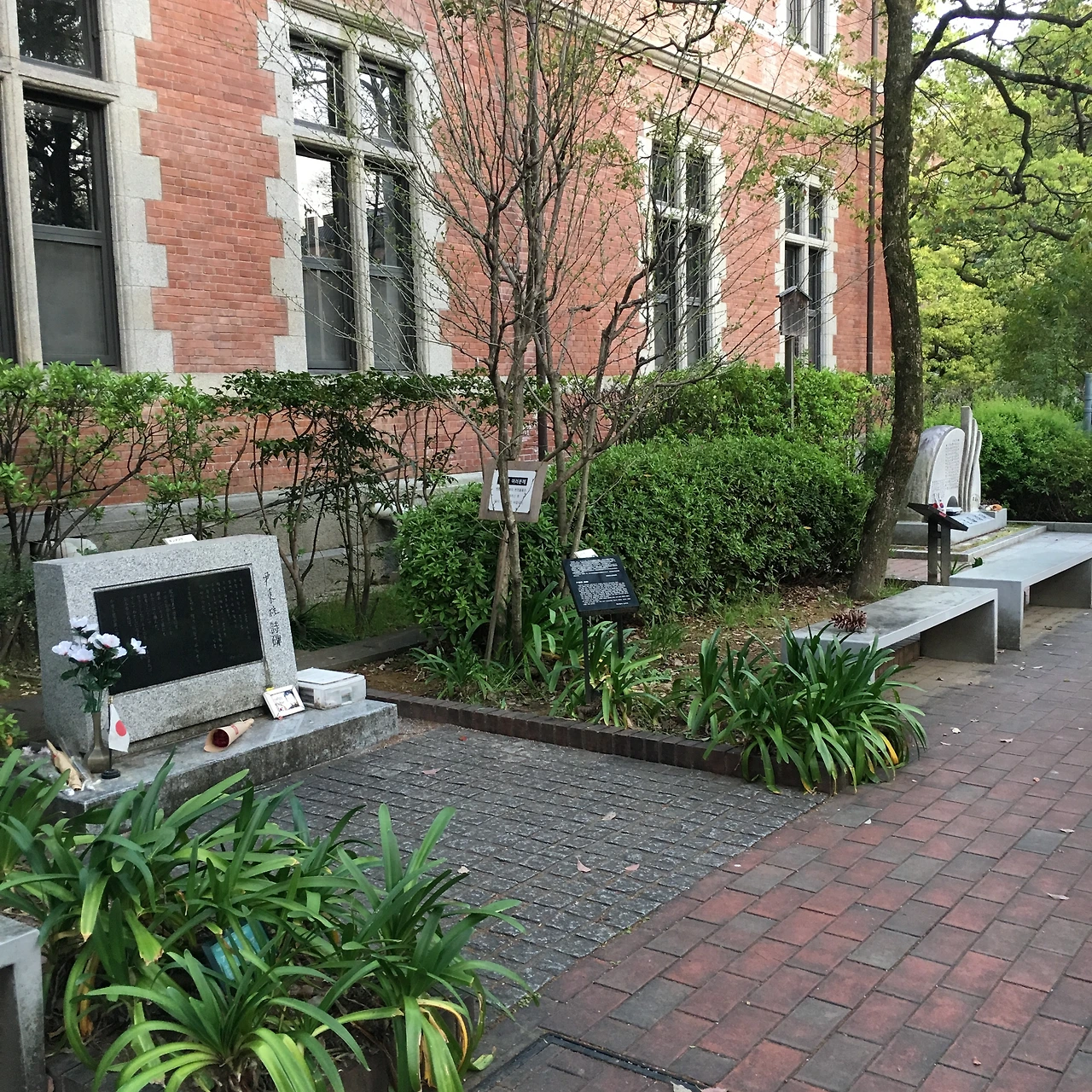 도시샤대학교 이마데가와 캠퍼스는 사랑받는 두 시인이 살고 있던 그 당시와 크게 달라지지 않았다. 여전히 19세기 서양 감성의 벽돌 건물이 자리 잡고 있고, 학생들은 그 사이를 매일 바쁘게 거닌다. 학생들이 바쁘게 다니는 길 한 가운데에는 두 시인의 필체로 쓰인 시가 비석에 새겨져 있다. 시비는 학교와 모두의 일상에 녹아들 듯 아담하게 자리를 지키고 있다.