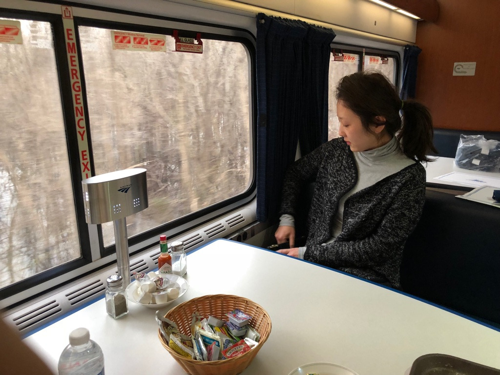 야간열차는 유럽과 비슷했다. 조금 다른 게 있다면 기차가 아주 컸다는 것뿐(으레 미국의 것은 다 그런 것 아닐까?). 새벽 두 시쯤 자리를 잡고 앉아 신나 보이는 그와 함께 와인 몇 모금을 홀짝거리다 잠들었다. 어릴 때부터 엄마와 함께 목욕탕에 가면 구석에 있는 딱딱하고 따뜻한 대리석 바닥에 엎드려 물방울 떨어지는 소리를 들으며 잠드는 걸 좋아했는데, 일정한 패턴의 소음이 있는 기차소리는 유년 시절의 기억을 떠오르게 했다. 잠은 쉽게 찾아왔다.