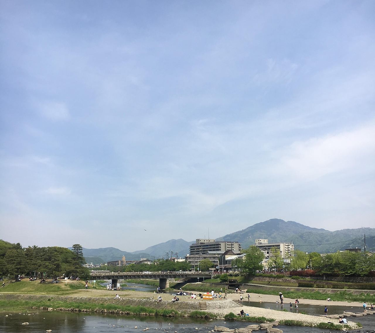평화롭고, 즐겁고, 꿈꾸기 좋던 어느 토요일. 가모가와는 맑은 하늘색이었다.
