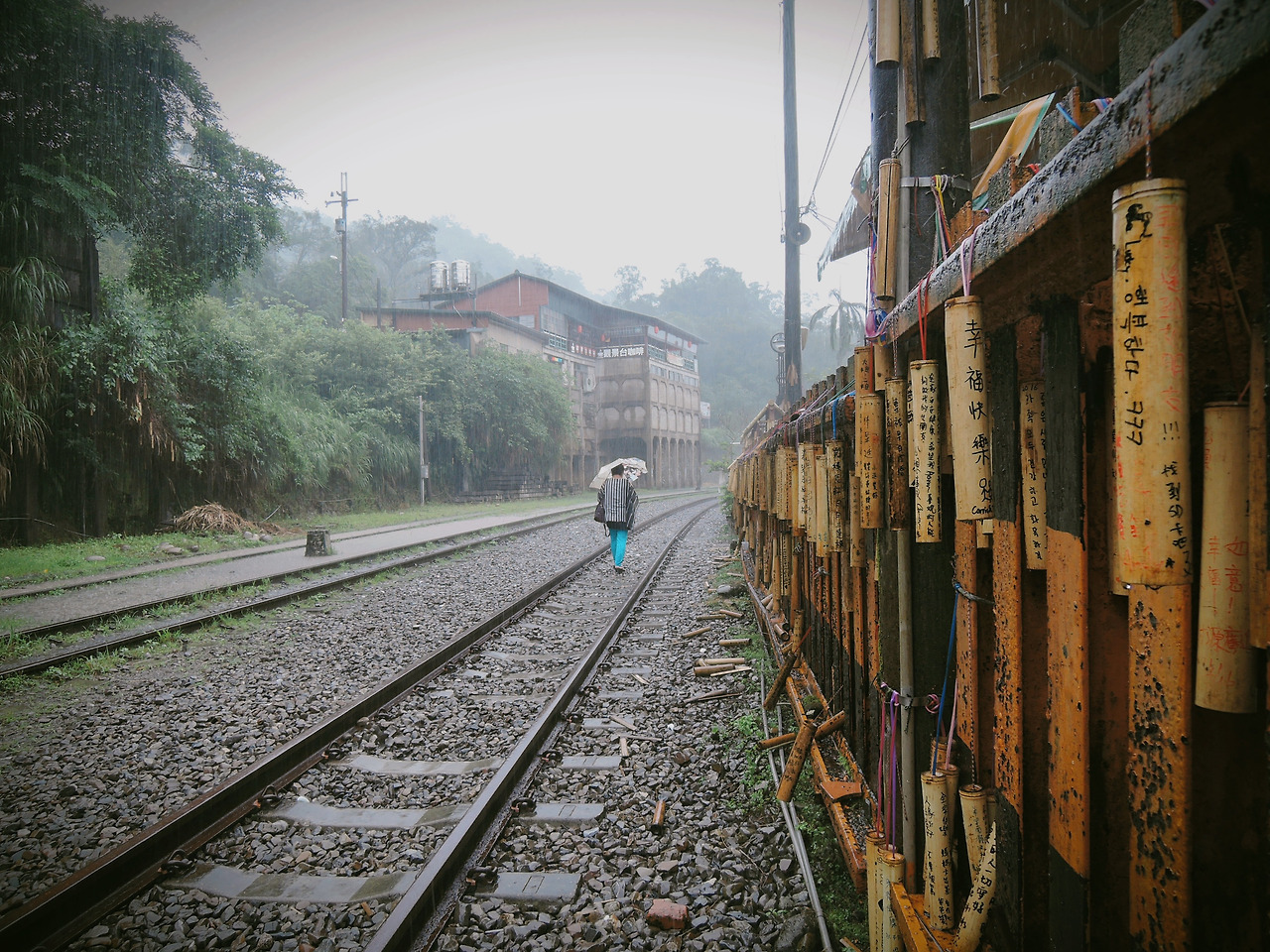옛 거리 상점가에서 타이완 우체통 모형을 하나 샀다. 도쿄 유학 전까지는 모든 나라의 우체통이 우리나라와 같은 모양일 줄 알았다. 여행을 다니며 모양도 색도 나라마다 제각각이란 걸 알게 되었다. 대만의 우체통은 특이하게 초록색이었다. (빨간색도 있다) 옛 거리를 따라 역 뒤쪽으로 걷다 보면 소원을 적은 대나무들이 주렁주렁 걸려 있는데, 보송보송한 대나무가 아니고 비에 젖어 축축하니 좀 더 낡은 느낌이었다. 그 모습이 오히려 운치 있긴 했다. 그 옆으로는 영화 <그 시절, 우리가 좋아했던 소녀>의 두 주인공이 걸었던 철길이 지난다. 느릿느릿 철로를 걸어보다가 대나무를 사서 소원을 적어 걸어 놓았다.