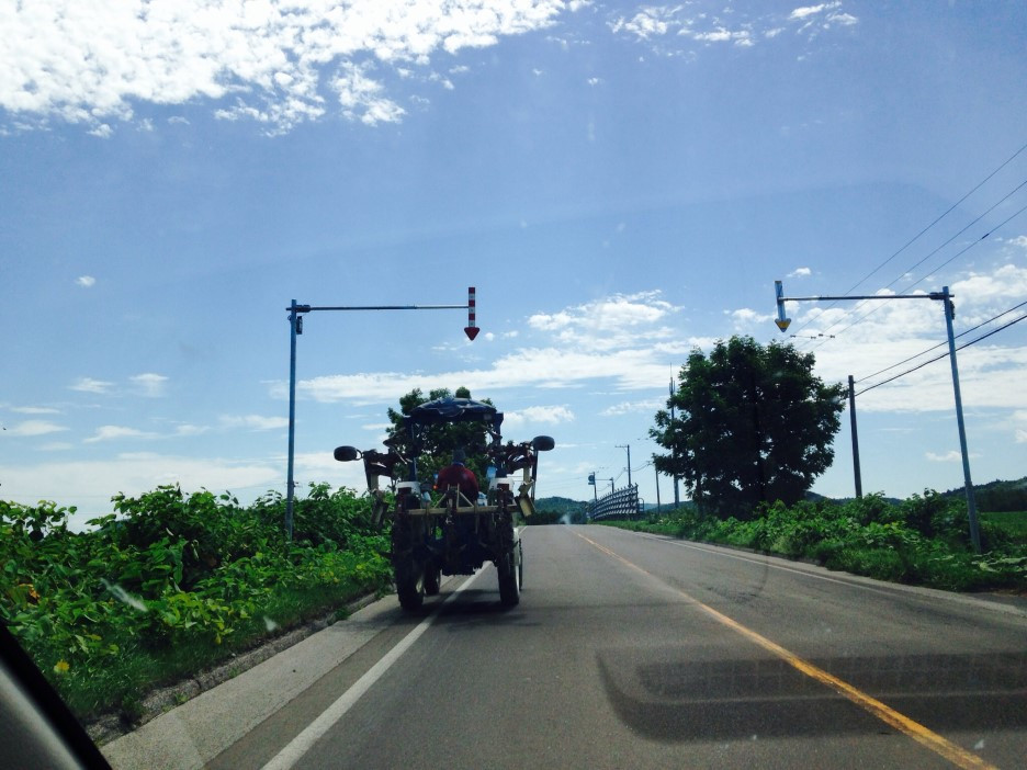 드르륵 문을 열고 들어가니 북아메리카 인디언처럼 얼굴이 크고 머리를 묶은 가게주인이 휙 눈을 마주친다. 농장에서 직접 운영하는 곳으로 전국으로 운송 가능한 감자박스가 가격별로 입구에 늘어서있다. 메뉴는 굽거나 삶거나 끓인 감자나 옥수수가 대부분인데 카운터 옆에 각각 샘플이 놓여있는 것이 재미있다. 가격도 100엔에서 200엔 정도이니 자연식 분식집이라고 해야 할까. 우린 감자 빵과 구운 옥수수, 찬 멜론을 주문했다. 좌식테이블의 옆 통유리로 비치는 풍경은 빈 도로와 역시 텅 빈 하늘. 인디언을 닮은 아저씨가 신중한 자세로 옥수수를 그릴에 굴리고 있고 그 뒤 주방에선 작은 볼륨으로 밥 딜런이 흘러나온다. 계산은 나중에, 접시를 카운터에 갖다 주는 것은 두 번 귀찮은 일이 되므로 그대로 두시오라는 소소한 가게의 룰이 여기저기 보인다.