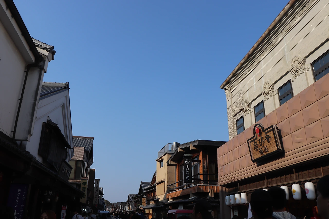 내궁 앞에는 온갖 음식점, 기념품점 등 관광거리가 늘어서 있었다. 거리는 사람들로 북적북적했지만, 갓길로 조금만 빠지자 교토보다도 한적하고 고즈넉한 거리가 드러났다. 갓길을 따라 조금 걷자, 여유롭게 흐르는 강가가 있었다.