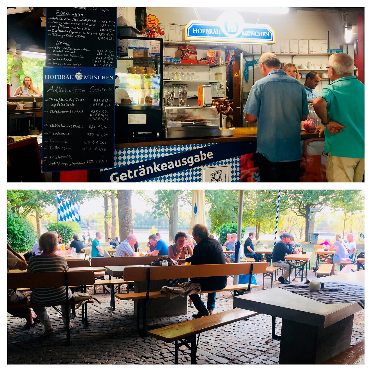 자, 이곳이 비록 맥주의 본 고장 바이에른은 아니지만 단골 야외 맥줏집으로 가봅니다. 라인강 옆의 이 맥줏집은 호프브로이 하우스라는 바이에른 맥주 명가의 술을 직접 공수 받는 곳입니다. 단, 여름에만 연다는 단점이 있어 열 때 열심히 가 줘야 합니다.