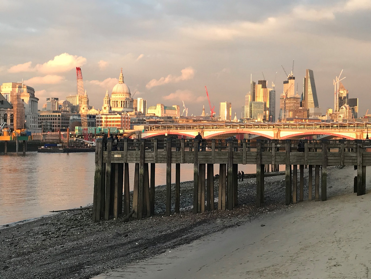 논현동 구석 자취방과 혜화동의 일터를 오가던 시절, 140번 버스에 앉아 졸다 문득 마주하곤 했던 한강의 해돋이와 해넘이. 어쩌면 나는 템스에서 비슷한 위안을 받고 있는지도 모르겠다. 밀물과 썰물이 있는 템스의 수면 레벨은 하루에도 몇 미터씩 오르내린다. 수면이 낮아지는 날이면 옛 부두의 흔적들에 고스란히 남아 있는 강바닥의 거친 상처들이 적나라하게 드러난다. 그조차도 매일 걸으며 살피기 전에는 모를 일이었다. 나는 그렇게 매일 같은 장소에서 템스를 담는다. 매일 재발견하게 되는 런던의 일상 풍경에서 나는 지난 7년여 간 이 도시를 살아남고 버텨야 하는 곳으로만 여겨왔다는 생각에 왠지 헛웃음이 나기도 한다.