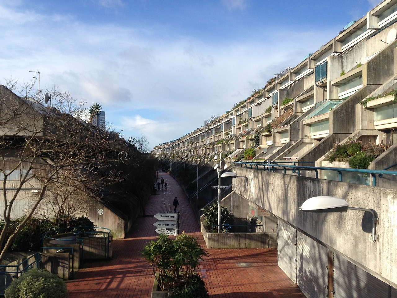 알렉산드라 앤 아인스워드 주거단지Alexandra and Ainsworth Estate의 로리웨이Rowley Way는 1968년도에 영국의 건축가 니브 브라운Neave Brown이 설계하여 1978년에 준공된 런던 캠든Camden 지역의 주거단지이다. 축구장 12개를 합한 대지 규모, 단지의 초입부터 그 맞은 편 끝까지 약 450미터 길이에 달하는 선형배치의 공간구조, 그 안에 총 520가구, 1600여명을 수용할 수 있는 효율성. 주거단지의 북쪽으로 지나가는 철로의 소란스러움을 등지고 하나같이 남향으로 배치된 모든 세대들이 층층이 테라스 하우스 같은 모습이다. 지구라트Ziggurat를 꼭 닮았다. 단지는 놀이터, 학교, 커뮤니티 센터, 청소년 클럽, 주차시설, 가든, 지역난방시설 등 생활에 필요한 기본적인 편의시설들을 갖추고 있어 마치 이곳에서의 생활을 주거단지 경계 안으로 무한정 수렴하도록 의도한 느낌을 받는다.