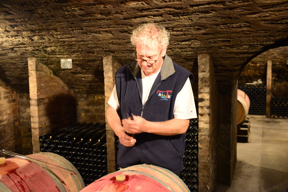 습한 곰팡이 냄새, 오크통과 포도향이 퍼지는 작은 저장고에서 양조자 중 한명인 크리스티앙 구주Christian Gouges를 만났다. 분명 까다로운 사람일거야 하는 상상이 무색하게 푸근한 미소를 짓는 아저씨가 맞아주었다.