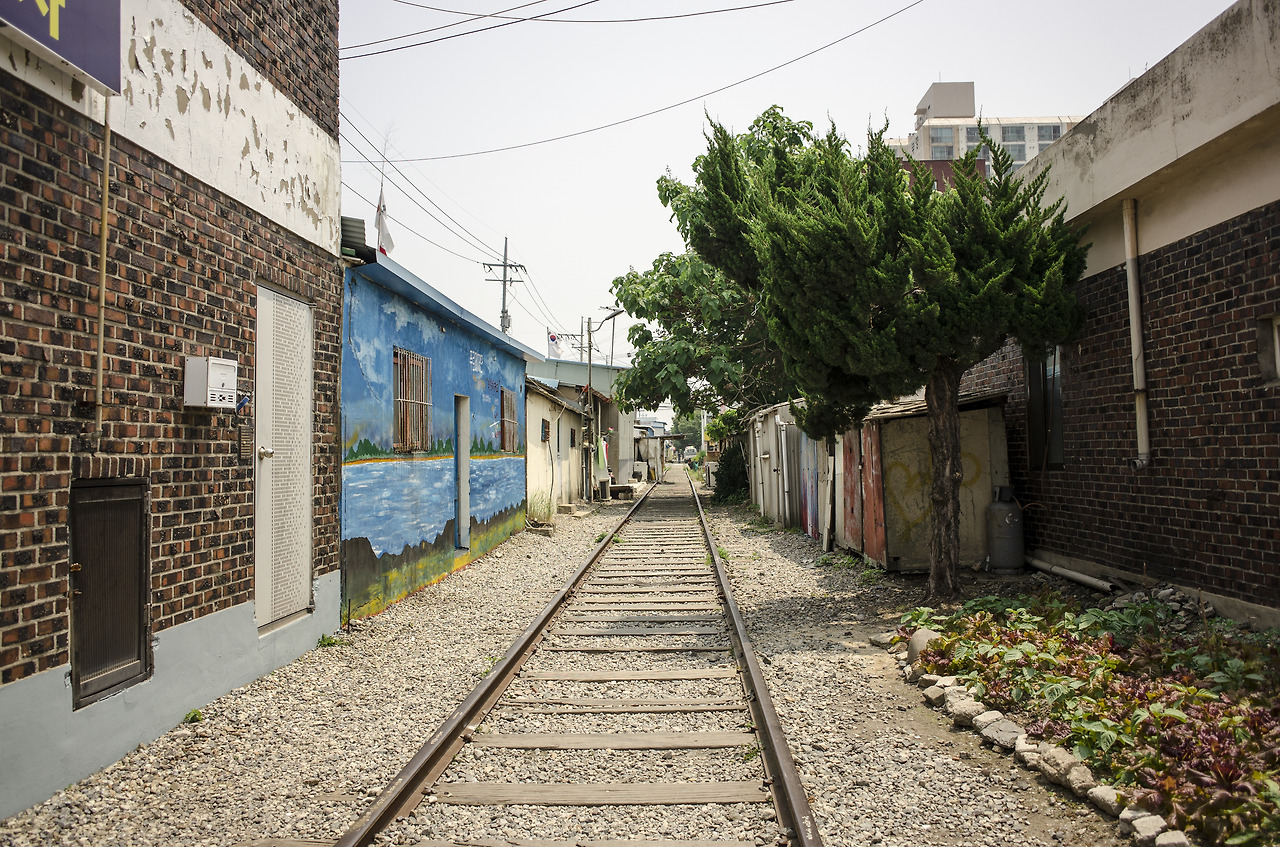 안내를 바라는 사람이 좀처럼 나타나지 않는 안내 창구 앞에 섰다. 따로 무슨 말을 하진 않았다. 서로 2초 간 바라보고, 창구 밖으로 나온 해설사를 따라 다시 철길 가운데 섰다. 서울서 오셨어요? 네. 놀러 오신 거지요? 정확한 나의 처지였다. 철길에서 두세 걸음 남짓 떨어져 앉은 판잣집에는 종이 공장이나, 그 공장에 원료를 대던 나무 공장에서 일하던 사람들이 살았어요. 고물을 줍는 노인들도 있었지요. 군산에서 제일 가난하고 힘든 동네였어요. 지금은 걸음마다 쫀득이, 아폴로, 교복대여, 화물철도 시대의 추억을 파는 일도 경쟁이 빡빡한데.